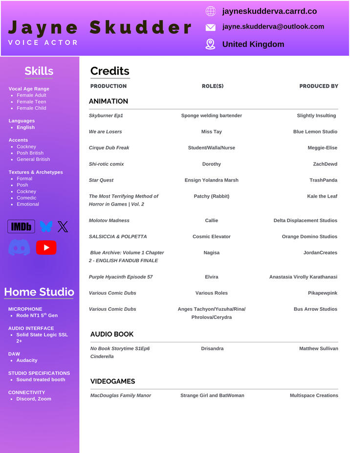 A lady with a flair for the upper class but the grit of a commoner. Check out my reel below!